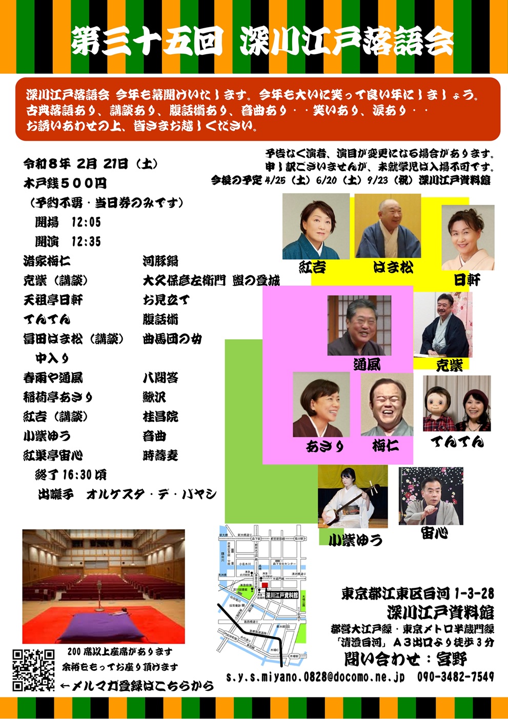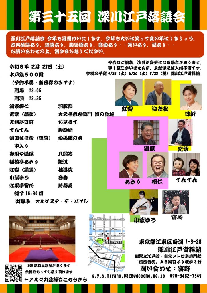 深川江戸落語会 今年も幕開けいたします。今年も大いに笑って良い年にしましょう。
